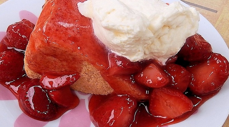 Try this Angel Food cake with fat free and sugar free creamy strawberry filling topped with cherries. This is a great alternative icing for guilt free desserts.