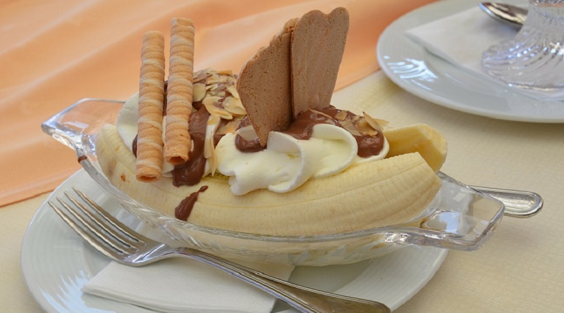 The original banana split was created in 1904, but with an average of 1,000 calories, it’s also very high in calories. However if you keep the portions realistic, and use non-fat frozen yoghurt in place of ice cream it allows you to indulge without the guilt.