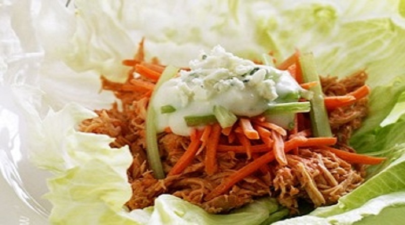 - To serve, spoon 1/4 cup of the chicken into each lettuce leaf.