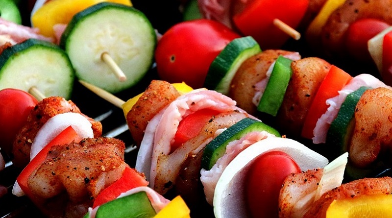 Serves 4 – Serving Size: 3 1/2 chicken skewers, 1 zucchini – Nutrition Per Serving