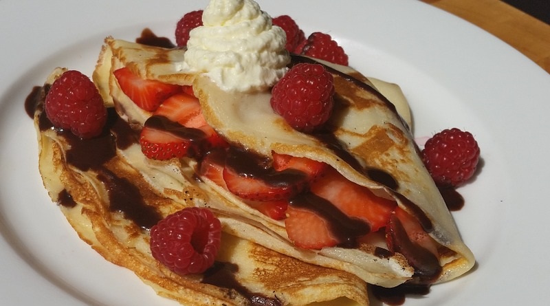 - To serve, spoon 2 tbsp whipped cream into centre of each crepe.