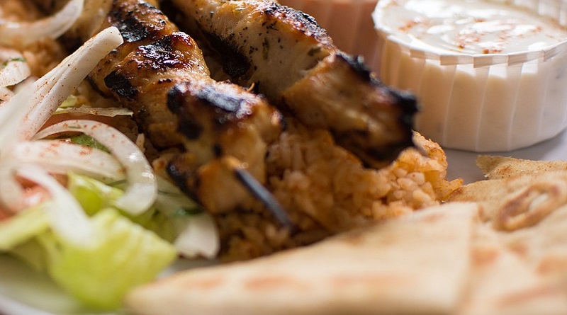Crisp lettuce, spring onions, sliced juicy tomatoes and chunks of cucumber go well with this dish.