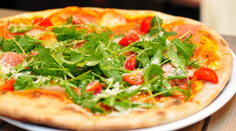 - Spoon salad over pizza.