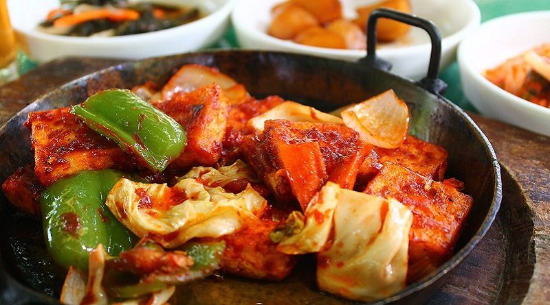 - Add the tomato, soy sauce and vinegar and cook 1 more minute.