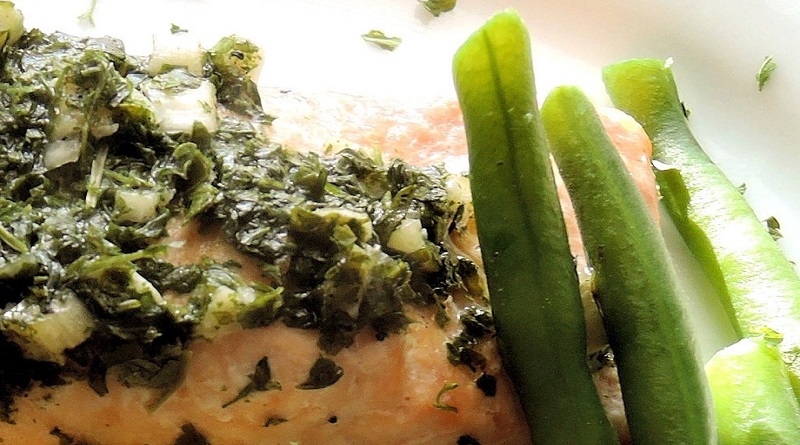 Eating salmon is a deliciously smart choice. Packed with omega-3 fatty acids and protein, this dish will keep you energized for hours! This lower calorie recipe has tender, moist fish with crisp beans that would make a great evening meal!