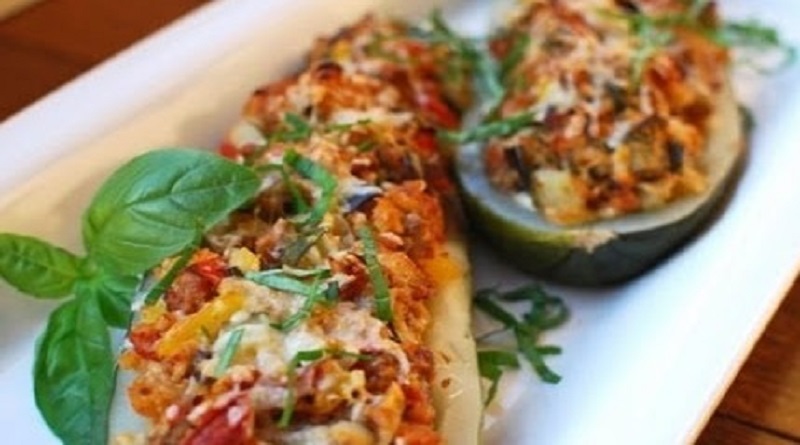 Zucchini hollowed out and stuffed with lean Italian sausage, then topped with marinara and cheese. There’s no tastier way to use up extra zucchini. Watch how to make zucchini stuffed with sausage, seasoned ground beef, and a rich tomato sauce.