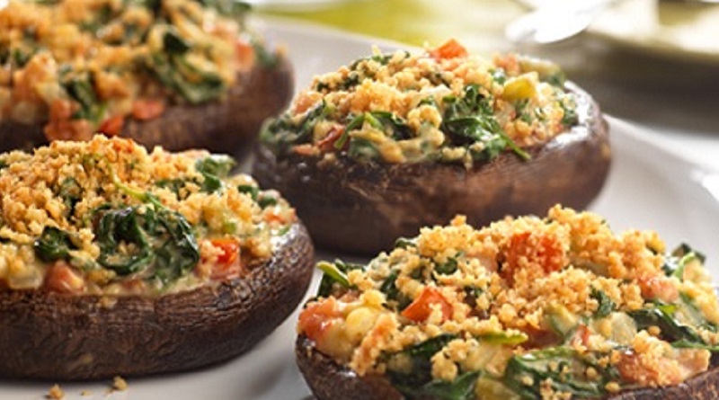 Try these mushroom caps generously stuffed with a combination of sautéed baby spinach, chopped mushrooms, bacon, bread crumbs and Parmesan cheese. There is a lighter alternative to the traditional stuffed mushrooms below the video, yet they are still loaded with tons of flavour. You could make this recipe with turkey bacon or you could replace the bacon with a little Feta cheese and chopped fresh herbs.