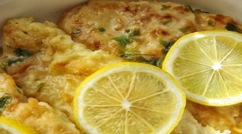 Skinless chicken cutlets, lightly coated in flour and egg, cooked in a white wine lemon sauce. This recipe is great served with pasta.