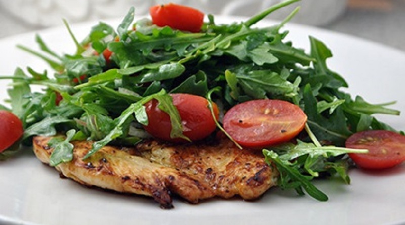 These recipes for breaded chicken cutlets are baked in the oven and served with spring greens or arugula, tomatoes and balsamic vinegar. The first recipe is a not-so-skinny version of this dish. The second recipe is a lightened up version that is much more figure-friendly, and perfect to make with ripe tomatoes.