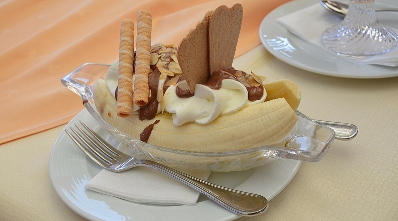 The original banana split was created in 1904, but with an average of 1,000 calories, it’s also very high in calories. However if you keep the portions realistic, and use non-fat frozen yoghurt in place of ice cream it allows you to indulge without the guilt.
