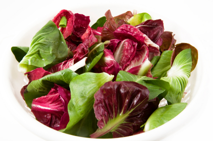 There are three types of chicory: red chicory, which is sometimes known as radicchio and is often seen in mixed salad packs in supermarkets; sugarloaf varieties, which resemble lettuces and forcing chicory – this isn’t grown in the normal way. It’s deprived of light, or forced, in winter to make edible white growths called chicons.
