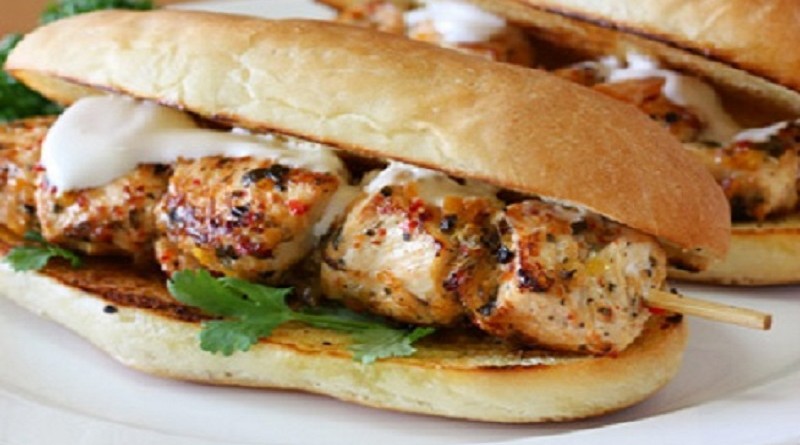 10. Place a skewer on each roll and carefully remove the skewer, leaving the chicken in the bun.