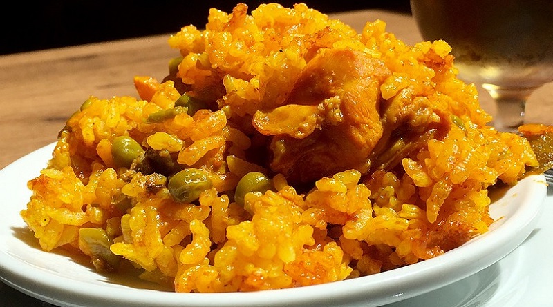 - Cover and cook for 10 min over a low heat until rice is almost cooked and most of the liquid has been absorbed.